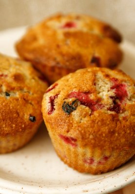 Vahusta munad suhkruga. Sulata või ja haki martsipan(või riivi). Sega jahud küpsetuspulbriga ja kalla hulka martsipanitükid. Kalla jahusegu munavahu hulka, lisa keefir ja marjad ja sega ettevaatlikult segamini, viimasena lisa jahtunud sulavõi. Sega veel korra läbi. Tõsta tainas muffinivormidesse ja küpseta 200 kraadi juures umbes 20 minutit. Retsept ja foto: Elina...