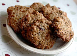 Sega kuivained omavahel, lisa hakitud šokolaad ja hakitud jõhvikad. Vahusta toasoe või suhkruga, lisa muna ja vahusta kohevaks. Tõsta plaadi peale pätsikesed ja vormi märja käega ühtlaseks. Kuumuta ahi 175 kraadini ja küpseta 15 min. Jahuta restil. Sellest kogusest saab 22 küpsist. Retsept ja foto: Elina Sildre (Perenaine.ee)