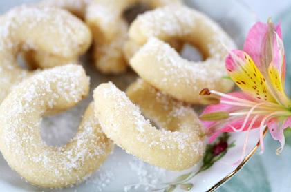 Näpi külmad võitükid jahu ja vanillisuhkru sisse ja sõtku tainaks. Vajadusel lisa 2 spl külma vett. Pane tainas 30 minutiks külmkappi. Võta tainast väiksem tükike, veereta sellest riba ja vormi sarvekeseks. Kasta suhkru sisse ja küpseta 150-kraadises ahjus 10 minutit või kuniks need on kergelt kuldpruunikad. Ahjust võttes lase ahjuplaadil jahtuda,...