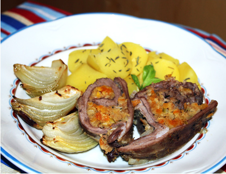 Täidise jaoks sulata või pannil, lisa väikseks tükeldatud porru ja purustatud küüslauk ning kuumuta pannil veidi pehmemaks, aga ära lase pruunistuda. Tõsta pann tulelt ja sega hulka tükeldatud aprikoosid ja varsseller, riivitud sidrunikoor, tüümian ja maitseained. Sega need komponendid kõigepealt korralikult omavahel läbi, siis lisa lahtiklopitud muna ja sega...