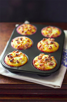 Vooderda pabervormidega 6 auguga tavasuuruses muffinipann. Lülita ahi 190 kraadile soojenema. Sulata või. Klopi lahti muna. Pane kokku muna, pett, sulatatud või ja sega ilusti läbi. Suuremas kausis sõelu/sega kokku kuivained – jahu, küpsetuspulber ja suhkur. Kalla muna-võisegu kuivainetele ning sega just nii palju, et kõik tundub segunevat kuid mitte...