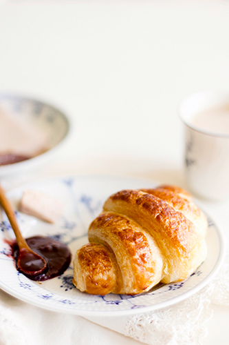 Ideaalses olukorras peaks õnnestuma sellest tainast lõigata kaheksa ühesugust kolmnurka, umbes 18 cm kõrged ja lühima küljega kuskil 9 cm – 10 cm. Tainast ei ole vaja enam õhemaks rullida, see võiks olla nii 4 mm-5 mm, nagu pakis on. Aseta kolmnurgad lauale, lühim serv enda poole. Tee lühima serva...