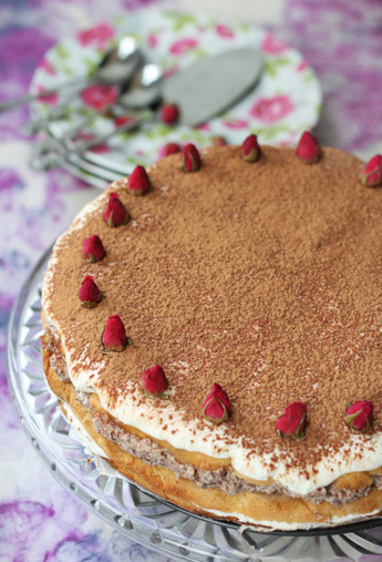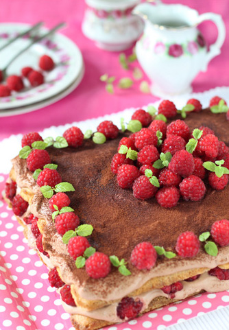 Sulata veevannil šokolaad. Vahusta kergelt mascarpone, lisa sulatatud šokolaad. Viimasena sega juurde vahustatud vahukoor, sega ühtlaseks kreemiks. Kasta küpsised hetkeks kohvisse ja aseta üksteise kõrvale serveerimisalusele (u. 4-5 küpsist kahele reale). Tõsta peale šokolaadikreem ja aja ühtlaselt laiali, kata vaarikatega. Taas tõsta peal kohvisse kastetud küpsised ja kata šokolaadikreemiga. Tõsta tiramisu...
