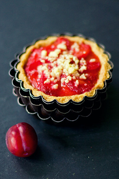 Sulata 20 g võid, kalla see lahtikäiva vormi põhja. Raputa vormi põhja ühtlase õhukese kihina demerera suhkur. Poolita ploomid, eemalda kivid. Pane ploomid vormi põhja, lõigatud pool allapoole. Suru ploomid tugevasti üksteise vastu. Vahed täida vaarikatega. Vahusta toasoe või suhkruga, lisa ükshaaval juurde munakollased, vahusta. Lisa hapukoor ning jahu, mis...