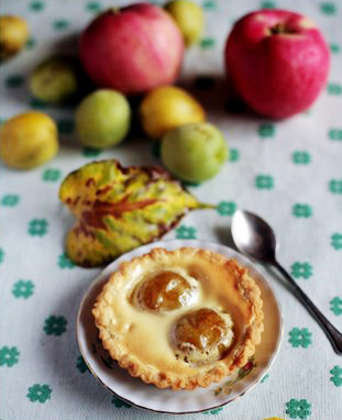 Põhja tegemiseks näpi külmad võitükid jahu ja suhkruga, sõtku juurde muna ja külm piim. Vooderda tainas lahtikäiva koogivormi põhja ja servadele, aseta külmikusse ootele. Kuumuta piim, võta pliidilt ning pane piima sisse 10 minutiks ligunema vaniljekupar (poolitatud) ja kardemon. Vahusta munakollased suhkruga heledaks vahuks. Kuumuta piim keemiseni, lisa ettevaatlikult munakollaste...