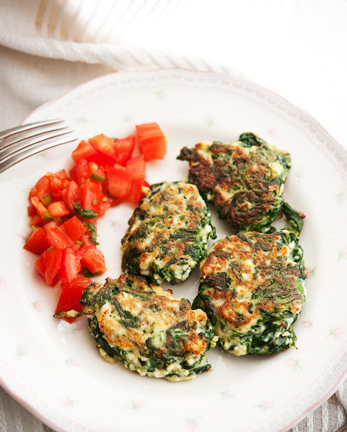 Kui kasutad värsket spinatit, siis kuumuta spinat kiirelt pannil õlis, et see muutuks pehmeks. Kui kasutad külmutatud spinatit, sulata see, ja pressi vedelik välja. Sega kokku kõik koostisosad. Tõsta pätsikesed lusika abiga pannile ja prae kummagilt poolelt pruuniks. Soovi korral võid lisada ka vürtsköömne segu ning spinati võid asendada mõne muu...
