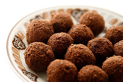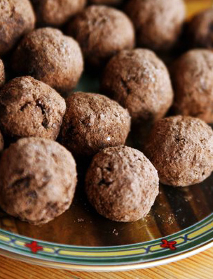 Sega paksupõhjalises potis koorepulber ja kakao piimaga. Lisa hakitud šokolaad. Kuumuta pidevalt segades vaiksel tulel, kuni šokolaad on sulanud. Lisa tuhksuhkur, paar tilka piparmündiõli ja hakitud pähklid, sega. Lase külmikus paar tundi taheneda ja vormi märgade kätega väikesed pallid. Veereta kakao-šokolaadigraanuli segus. Retsept ja foto: Elina Sildre (Perenaine.ee)