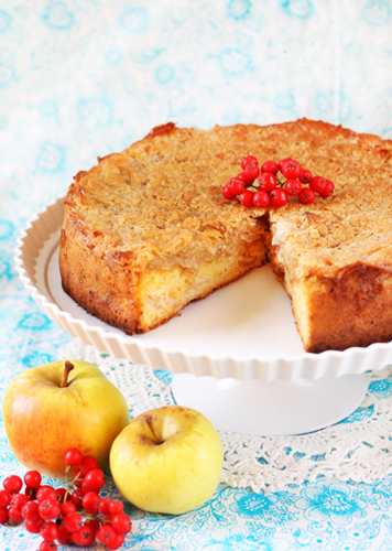 Vahusta munad suhkruga kohevaks vahuks. Sulata või. Sega kausis jahu(d) küpsetuspulbriga. Lisa munasegule vaheldumisi jahusegu ja sulatatud või. Sega võimalikult väheste liigutustega ühtlaseks tainaks. Vala tainas 24 cm-se läbimõõduga lahtikäivasse koogivormi. Viimasena lisa tükeldatud õunad, vajuta kergelt tainasse. Küpseta 200-kraadises ahjus u. 15-20 minutit. Samal ajal valmista kate, selleks mõõda kõik ained potti...