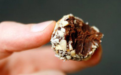 Koori mandlid, rösti ja jahvata jahuks. Haki datlid hästi peeneks ja pane koos koorega potti. Lase keema, lisa brändi, või ja šokolaad. Võta pott tulelt ja sega ühtlaseks. Lisa mandlijahu, kakao ja tuhksuhkur šokolaadisegule ja pane külma, kuniks mass on tahenenud.
