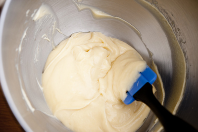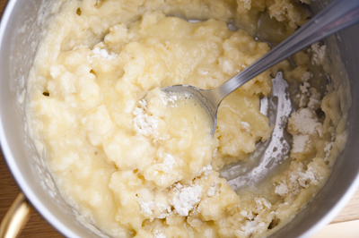 Pane segu veelkord pliidile ja kuumuta seda keskmisel tulel pidevalt segades 2 minutit. Segu muutub nüüd veelgi ühtlasemaks ja läikivamaks. Aseta saadud mass jahtuma ja oota kuniks see on jahtunud toatemperatuurini. Kui lisad munad liiga kuumale massile võivad need hüübida; lisaks on liigselt kuum tainamass petlikult vedelam.