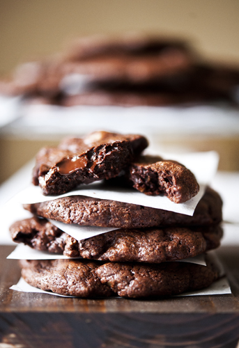 Küpsetamisele eelneval päeval haki šokolaad ja eralda 340 grammi. Sulata see kuumavee vanni kohal. Sulata või eraldi potis ja sega sulanud šokolaadi hulka. Sega suhkur (suhkrut läheb tõesti nii palju, kuid küpsised ei saa siiski ülimagusad mõru šokolaadi tõttu), tärklis, küpsetuspulber ja sool. Lisa munad ja klopi taigen ühtlaseks. Nirista sisse...