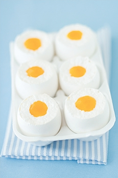 Sega kausis kokku munakollased, astelpajupüree, või ja suhkur. Aseta kauss vesivannile ja kuumuta pidevalt segades kuni kreem pakseneb, umbes 8 minutit. Lase jahtuda. Täida iga pestud tühi munakoor poolenisti astelpajukreemiga. Umbes 2 supilusikatäit kreemi peaks üle jääma, hilisemaks serveerimiseks. Kuumuta ahi 220 kraadini. Vahusta munavalge natukese soolaga õrnaks vahuks, seejärel hakka lisama...