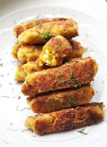 Riivi kartul, lisa munad, kodujuust, maitseained, sega korralikult. Lisa jahu, sega. Vormi pulgakesed, paneeri riivsaias ja prae õlis mõlemalt poolt kuldpruuniks. Serveeri värske salatiga või meelepärase kastmega. Retsept: Jan Janno, foto: Eva Pärtel (Perenaine.ee)