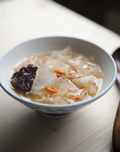 Pane seened eelmisel õhtul külma vette likku (kasuta rohkelt vett ja suuremat anumat, sest seened paisuvad). Kalla ära leotusvesi ja pane seened potti, kalla peale niipalju vett, et seened oleksid kaetud ja vett oleks veel pisut üle. Lisa ka suhkur. Keeda seeni madalal tulel 40 minutit. Lisa goji marjad ja datlid, keeda veel 10...