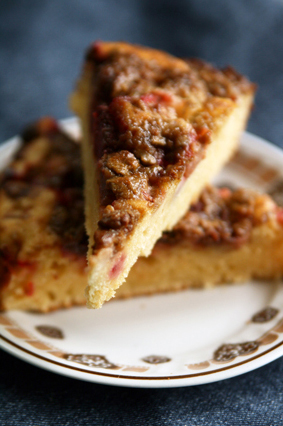 Vahusta munad suhkruga, sulata ja jahuta või. Sega jahu küpsetuspulbriga. Koori ja tükelda rabarber ja lõika maasikad väiksemateks tükkideks. Sega munavahu hulka hapukoor, sõelu hulka jahu ja aeglaselt segades nirista hulka sulavõi. Kalla tainas 24 cm-se läbimõõduga võitatud koogivormi ja laota peale maasika-rabarberitükid. Puista peale peenestatud halvaa. Küpseta 200 kraadi...