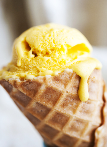 Klopi munakollased käsitsi 1 dl suhkruga kergelt vahtu. Kuumuta piim keemiseni. Nirista see munakollaste hulka, viimaseid pidevalt segades. Kuumuta saadud segu madalal temperatuuril kuni see pakseneb. Jahuta toatemperatuurini. Sega juurde külmkapikülm mangopüree ja koor. Valmista jäätisemasinaga jäätis. Sellest kogusest saab u. 1 liiter jäätist. Retsept ja foto: Eva Pärtel (Perenaine.ee)