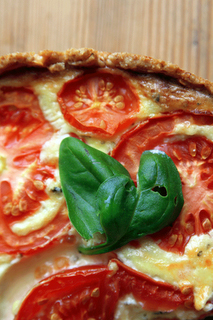 Sega omavahel pehme või, jahu, küpsetuspulber ja riivitud juust. Lisa vesi. Suru tainas võitatud 24 cm-se läbimõõduga pirukavormi ja eelküpseta umbes 10 minutit 200-kraadises ahjus. Sega täidiseained ja kalla eelküpsetatud põhjale. Kata tomativiiludega. Küpseta veel umbes 25 minutit, kuni täidis on hüübinud ja kaunilt kuldne. Retsept ja foto: Elina Sildre (Perenaine.ee)