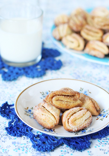 Esmalt sega jahu ja sool küpsetuspulbriga, millele lisa külmad võitükid ja martsipanitükid. Sõtku ühtlaseks tainaks ja sega juurde ka kohupiim. Tainas ei tule väga jahune, mistõttu on seda pisut ebamugav rullida – aitab, kui asetad taina külmkappi pooleks tunniks. Soojenda ahi 180 kraadini. Rulli tainas 0,5 cm paksuseks, lõika välja...