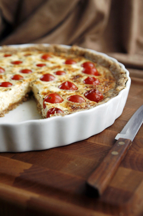 Haki põhja koostisained ühtlaseks ja sõtku kokku tainas. Rulli see kergelt jahusel laual õhukeseks. Vooderda 24 cm-se läbimõõduga pirukavorm tainaga, ääred toesta hõbepaberiga ja toksi põhjale kahvliga augud. Pane pirukapõhi 30 minutiks külma. Samal ajal sega munad, kohupiim, hapukoor ja riivitud juust. Lisa sool, pipar ja basiilik. Eelküpseta põhi 200-kraadises ahjus...