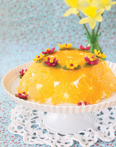 Vooderda kumerapõhjaline kauss toidukilega. Lõika apelsinidelt mõlemad tipud ära ja eemalda seejärel koor suunaga ülevalt alla nii, et viljaliha tuleb igalt poolt nähtavale ja kusagilt ei paista valget aluskoort. Viiluta apelsinid, kata kausi põhi ja ääred tihedalt apelsini (võimalikult ühesuuruste) viiludega. Sulata veevannil hakitud valge šokolaad, jahuta. Vahusta koor ja sega kohupiimapastaga. Sega...