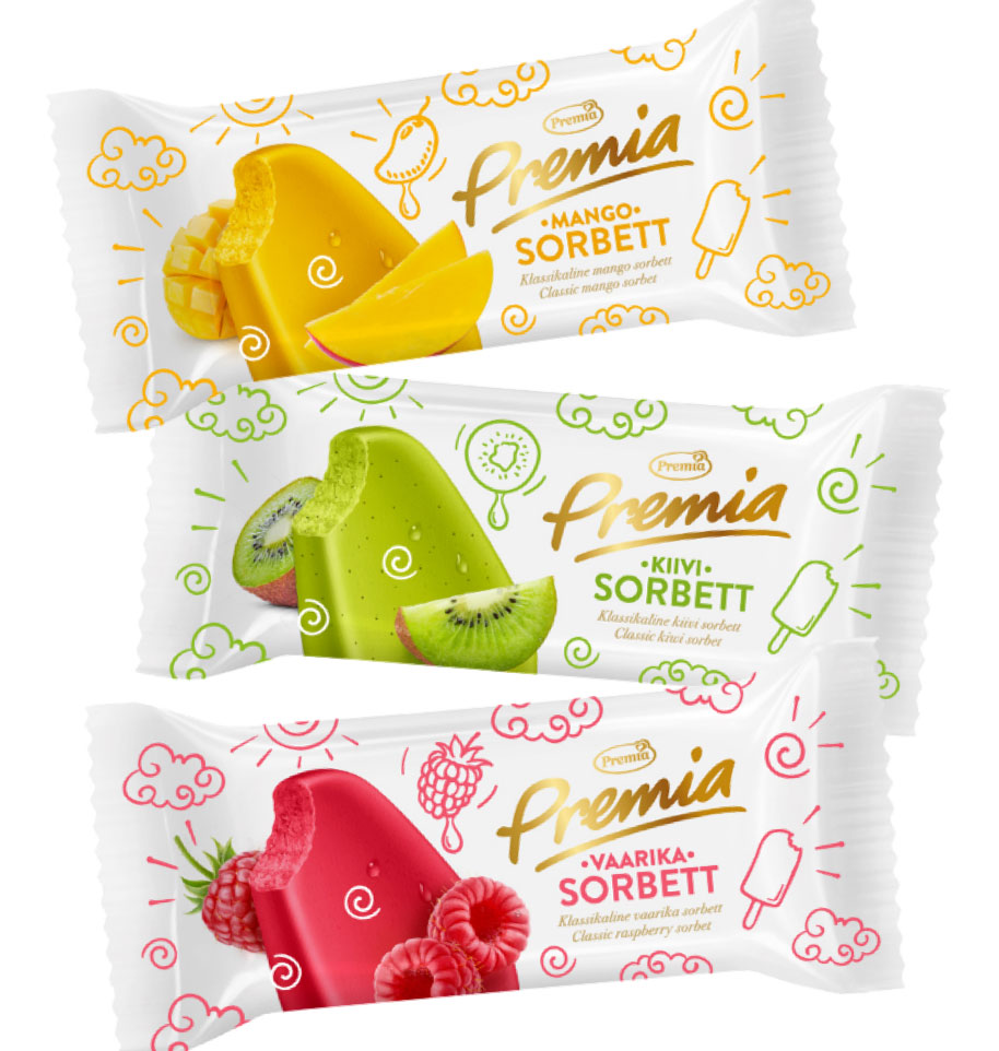 Premia mango-, kiivi- ja vaarikasorbett. Hapukate ja madala kalorsusega sorbettide ehk külmutatud maiuste valik muutub Eestis järjest laiemaks. Uutest sorbettidest on Premia ise kõige uhkem mangosorbeti üle, mille valmistamiseks katsetas India erinevatest mangosortidest valmistatud püreesid, kuniks leidis selle õige. Pingutus oli seda väärt, sest sorbett on tuntavalt küpse mango maitsega. Vaarikasorbetis on kasutatud toorvaarikamoosi ja see maitseb hästi marjane. Kõik Premia sorbetid on sobilikud ka veganitele.