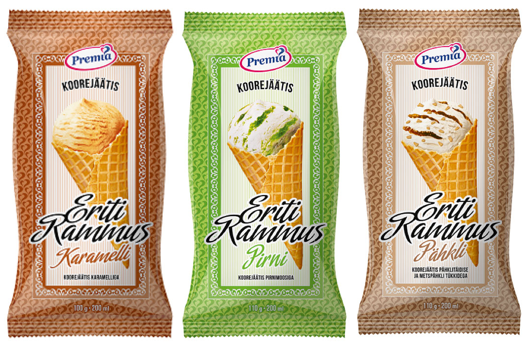 Premia uued Eriti Rammusad. Eriti Rammus sari on Premia tootevalikus üks populaarseim – koorene, kreemine ja igati aus vaniljejäätis. Tänavu on see sari saanud lisa kolme uue maitse näol: karamelli, pirni, pähkli. Karamell keedetakse Premias kohapeal; pähkli jäätise sees on ka nougat-tükid.
