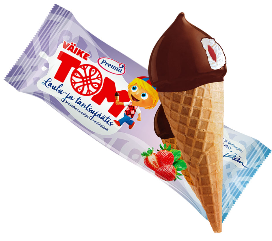 Laulu- ja tantsupeo jäätis. See on laste endi poolt valitud – vahvlikoonuses väike Tom maasikamoosiga.