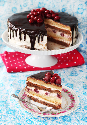 Kõigepealt valmista tainas, selleks sega omavahel jahu ja sooda. Sega hapukoor suhkruga ja lisa sõeludes jahusegu. Jaga tainas kaheks võrdseks osaks ja lisa ühele osale 2 spl kakaod. Võta kaks ühesuurust ümmargust koogivormi (24-26 cm) ja tõsta ühte vormi hele tainas ja teise tume tainas. Küpseta 190 kraadi juures u....