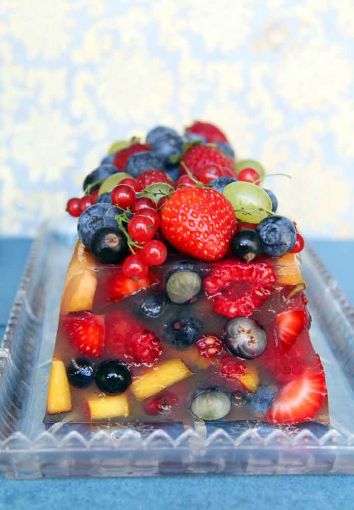 Säti puhastatud marjad vaheldumisi 28 x 7 x 9 cm keeksivormi. Sega õunamahl agar-agariga ja kuumuta potis kuni keemiseni. Võta tulelt ja jahuta 40 kraadini pidevalt segades (agar-agar tarretub 35-kraadises olekus). Vala marjadele, tõsta külmikusse tarretuma. Kui terriin on tarretunud, aseta vorm hetkeks kuuma vette (jälgi et vett vormi ei satuks)....