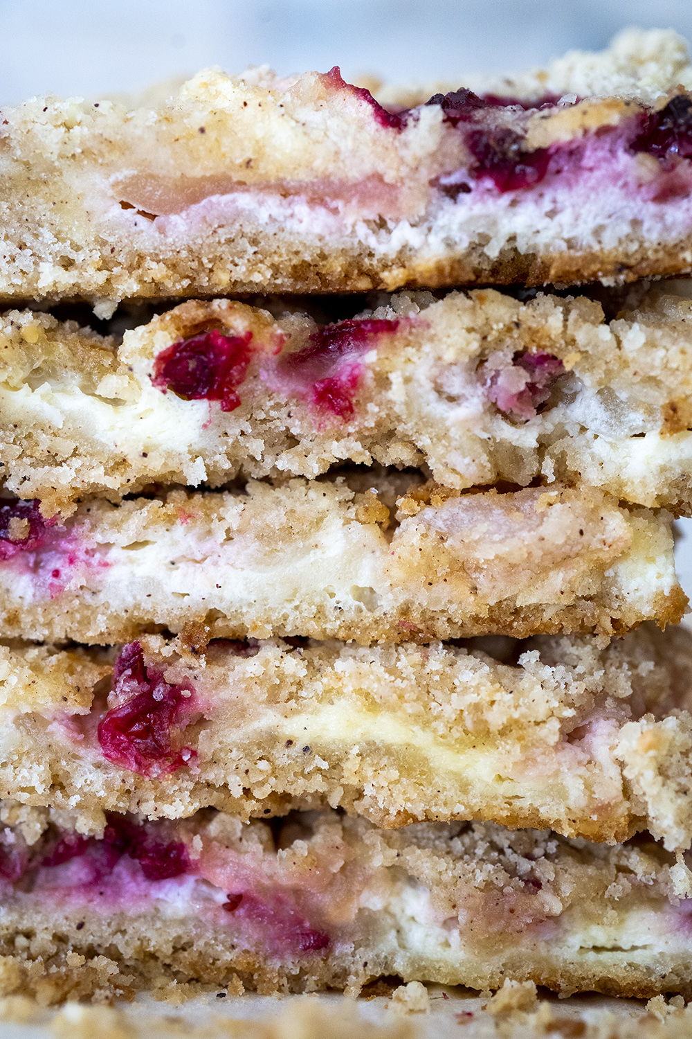 Sega koor, kohupiim, suhkur ja munad ühtlaseks ja vala ettevaatlikult põhjale. Koori ja tükelda õunad. Laota pohlad ja õunatükid ühtlaselt kohupiimale ning puista peale ülejäänud puru. Küpseta ahjus 200-kraadises ahjus 40 minutit või kuniks tuntavalt pruunikas.