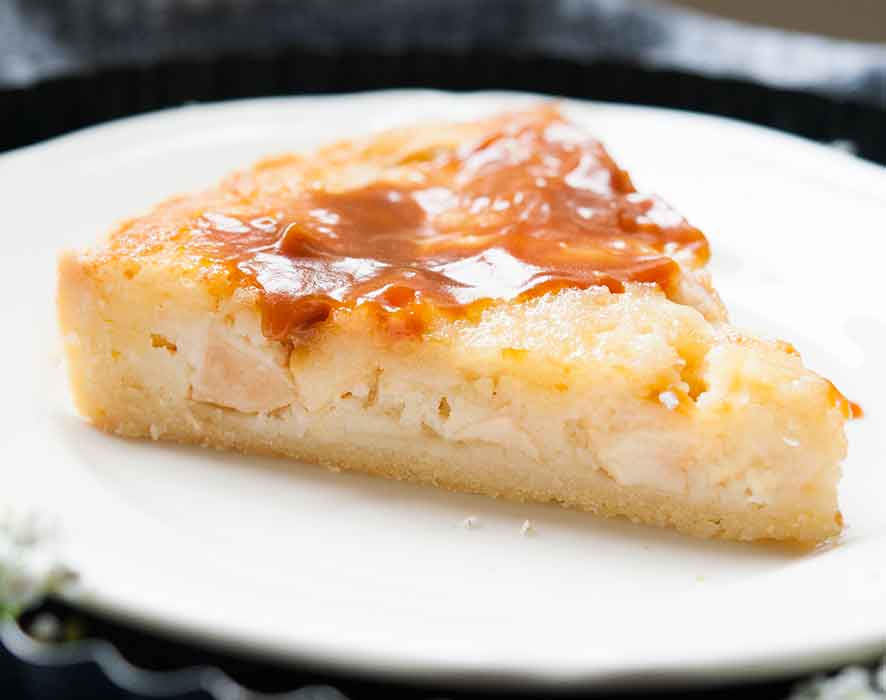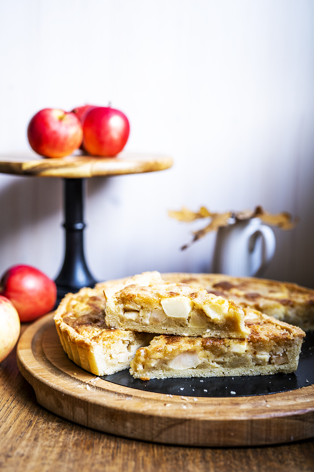 Täidiseks puhasta, koori ja tükelda õunad. Riivi martsipan ja sega toasooja või, suhkru, munade ja jahuga. Aseta õunatükid eelküpsetatud koogipõhjale ja kalla peale martsipanitäidis. Küpseta 185-kraadises ahjus ca 25 minutit või kuniks täidis seest küpsenud.