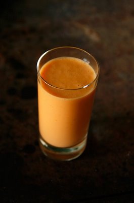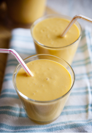 Vala kõik ained blenderisse ja vahusta u. pool minutit kuniks mass on helekollane ja kreemjas. Serveeri kohe. Retsept ja foto: Eva Pärtel (Perenaine.ee)