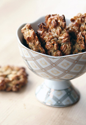 Vahusta munad suhkruga. Kalla hulka ülejäänud ained, sega segamini. Tõsta lusikaga küpsetuspaberiga kaetud plaadile väiksed pätsid ja silu lusikaga lamedaks. Küpseta 200 kraadi juures umbes 12 minutit. Retsept ja foto: Elina Sildre (Perenaine.ee)