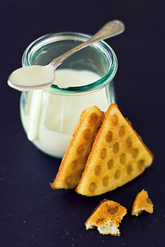 Klopi muna suhkruga heledaks. Sulata või. Sõelu jahu, tärklis ja küpsetuspulber muna hulka, sega ühtlaseks, nii et jahuklimpe ei oleks. Lisa sulatatud või, majonees ja natuke soola. Sega kõik kokku kergelt voolavaks massiks. Aja küpsiseraua mõlemad pooled kuumaks ja õlita. Vala lusikatäis tainast igasse vahesse, klõpsa pooled kokku ja küpseta keskmisel-kõrgel...