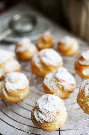 Mõõda valmis jahu kogus. Tükelda külm või. Pane vesi, või ja sool potti ja kuumuta keskmisel kuumusel kuniks või on sulanud ja segu on just keema minemas. Sega nii harva kui vajalik, sest segamisega aurustub liigselt vedelikku. Eemalda ruttu pliidilt ja lisa jahu. Hakka saadud massi intensiivselt lusikaga kloppima,...