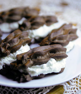 Sega kakaopulber jahu ja soolaga. Aja vesi paksupõhjalises keedunõus koos tükeldatud võiga keema. Lisa korraga kogu jahu, tainast samal ajal segades. Kui tainas moodustab ühtlase tombu, tõsta pott tulellt ja lase jahtuda. Lisa ükshaaval munad, segades taina iga kord miksriga ühtlaseks. Tõsta märja lusikaga (või kasuta tordipritsi) küpsetuspaberiga kaetud plaadile...