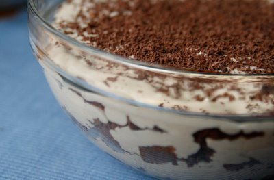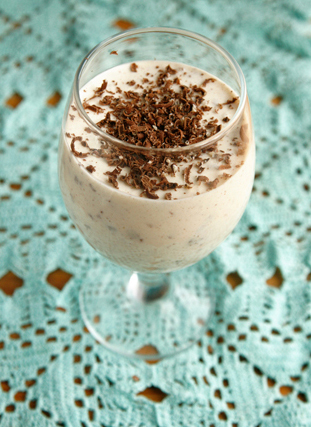 Klopi paksupõhjalises potis koor, suhkur ja munad segamini. Kuumuta vispliga pidevalt segades, kuni koor pakseneb. Jahuta külmaveevannis. Lisa riivitud sidrunikoor ja mahl, riivi hulka šokolaad. Lisa kohupiimapasta ja sega ühtlaseks. Paisuta ja sulata piimas želatiinipulber ja nirista kohupiimasegu hulka, sega. Tõsta klaasidesse ja hoia mõned tunnid enne serveerimist külmkapis. Kaunista...