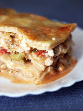 Pasta valmistamiseks sõtku munadest, jahust ja õlist kokku sitke ja elastne tainas. Mässi tainas kilesse ning lase tainal seista umbes tunnike. Jaga tainas neljaks küpsetusvormi suuruseks (15×20 cm) tükiks, rulli iga tükk väga õhukeselt laiali (või kasuta selleks pastamasinat). Keeda tükke 2 minutit ja tõsta siis sõelale nõrguma. Täidiseks haki sibul...
