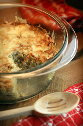 Keeda spagetid poolpehmeks, kurna. Lõika kanaliha kuubikuteks ja pruunista pannil, lisa hakitud sibul ja väikesteks kuubikuteks lõigatud kõrvits. Prae, kuni kõrvits on peaaegu pehme, maitsesta soolaga ja lisa hakitud till. Aseta võitatud küpsetusvormi kihiti spagetid ja täidis (3 kihti spagette, 2 kihti täidist või kuidas vormi suurus lubab). Klopi muna ja...