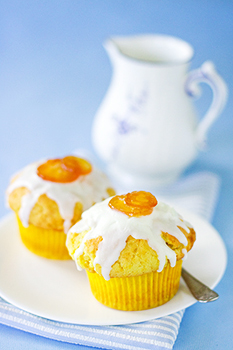 Eelsoojenda ahi 190 kraadini. Sõelu jahu ja küpsetuspulber kaussi, lisa suhkur. Sega. Väiksemas kausis sega kokku piim, keefir, või, muna, apelsini koor ja mahl. Kalla saadud segu kuivainete peale ja sega just nii palju, et jahu seguneb. Ära üle klopi. Jaota tainas 12 paberiga vooderdatud muffinivormi vahel. Küpseta 25 kuni 28 minutit või...