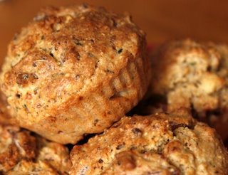 Klopi munad, koor ja õli segamini. Sega jahu tärklise, küpsetuspulbri, pipra ja soolaga. Haki sibul peeneks; lõika ka vorst ja sinihallitusjuust väikesteks kuubikuteks. Kalla vedelik jahusegu hulka, lisa vorst, sibul ja juust ja sega tainas ettevaatlikult segamini. Jaota tainas vormidesse ja küpseta 180 kraadi juures, pöördõhurežiimil umbes 25 minutit. Sellest...