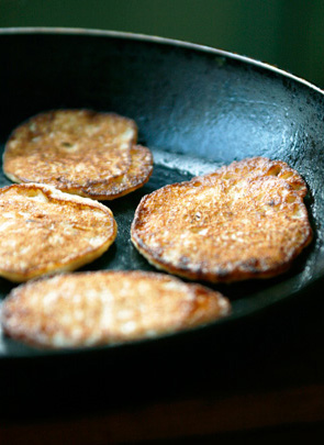 Eralda munavalged munakollastest. Vahusta munavalged tugevaks vahuks. Sega omavahel kuivained. Klopi lahti munakollased, lisa keefir ning seejärel jahusegu. Viimasena sega ettevaatlikult juurde vahustatud munavalge. Lase tainal seista u. 10-15 minutit. Kuumuta pann ja pane sinna veidi õli, tõsta tainast pannile väikesed koogid, küpseta mõlemalt poolt kuni koogid on kuldsed. Retsept ja foto: Marit Soobik (Perenaine.ee)