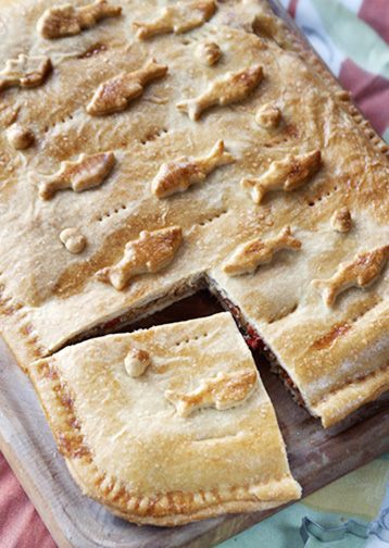 Lahusta pärm käesoojas piimas, lisa jahu ning sool. Sõtku kokku tainas, vormi palliks ja jäta rätiku alla kerkima. Lase tainal paisuda kahekordseks. Täidise jaoks haki sibul, küüslauk, tomat ning paprika, nõruta tuunikala. Kuumuta pannil õli ja hauta köögiviljad pehmeks. Sega tuunikala köögiviljaseguga, lisa hakitud petersell ja maitsesta segu soolaga. Jaga tainas...