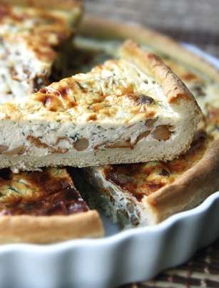 Lahusta pärm käesoojas piimas, lisa sool, jahu ja õli ja sõtku kokku tainas. Vormi palliks, määri pealt õliga ja lase rätiku all tainal tund aega kerkida. Prae kukeseeni võis. Klopi munad, hapukoor ja kohupiim ühtlaseks, lisa peenelt riivitud juust ja hakitud till. Maitsesta soolaga. Rulli kerkinud tainas jahusel laual õhukeseks...