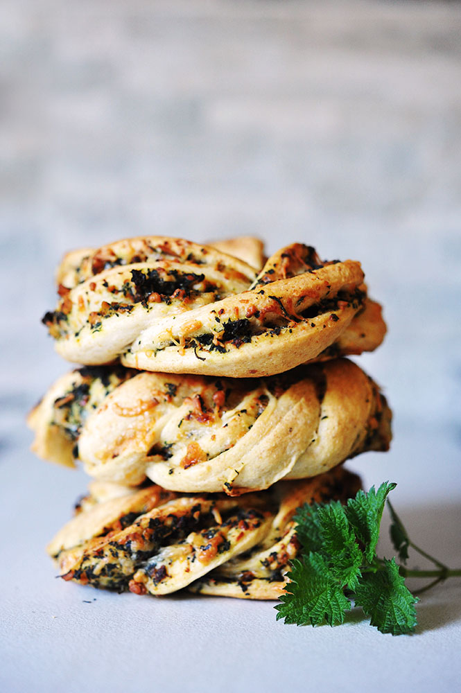 Pärmitainaks sega jahud, pärm, suhkur, sool. Sulata või, kalla potti juurde piim ja kuumuta kuniks segu on ca 40 kraadi. Kalla kuivainetele ja sõtku taigen. Raputa peale jahu, kata kile või märja rätiga ning pane tunniks ajaks sooja kohta kerkima. Vahepeal valmista ette täidis. Kalla nõgeselehtedele keema läinud vesi ja...