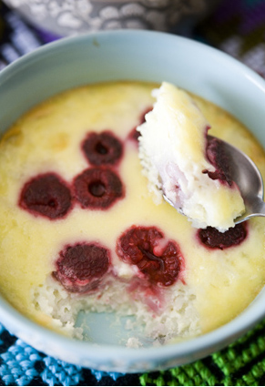 Klopi munad suhkruga lahti. Kuumuta koor ja piim keemiseni, nirista munasegusse. Pane ahjuvormi põhja lusikaga ühtlase kihina riis ja kalla peale saadud keedukreemi segu. Pane peale marju ja küpseta 160-kraadises ahjus, sõltuvalt ahjuvormide suurusest ja sügavusest, 15-30 minutit. Retsept ja foto: Eva Pärtel (Perenaine.ee)