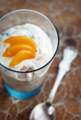 Lase riis vees keema, lisa piim ja kaneelikoor ja keeda tasasel tulel, kuni riis on pehme. Enne keetmise lõppu lisa pestud rosinad. Eemalda kaneelikoor ja jahuta. Vahusta koor 1,5 sl suhkruga. Lõika konserveeritud virsikud ja banaanid kuubikuteks. Tõsta vahukoore hulka jahtunud riisipuder ja puuviljatükid, sega kergelt läbi ja tõsta...