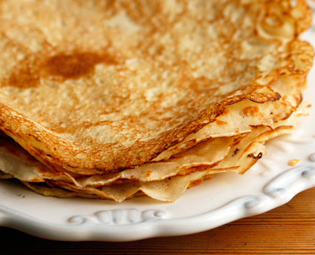 Klopi munad ja pool piimakogusest ühtlaseks. Lisa jahu, sool ja suhkur ja jätka segamist. Lisa vähehaaval ülejäänud piim. Lase tainal pisut seista ja küpseta õhukesed ülepannikoogid. Küsetamise ajal sega tainast aeg ajalt, sest riisijahu kipub põhja vajuma. Sellest kogusest saab umbes 10 kooki. Retsept ja foto: Elina Sildre (Perenaine.ee)