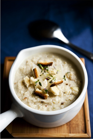 Tükelda lillkapsas, aseta ahjuplaadile, piserda üle oliivõliga ja raputa peale muskaatpähklit ja soolahelbeid. Küpseta 200-kraadises ahjus 35-45 minutit, kuniks lillkapsa õisikud on kergelt pruunikad. Võta ahjust ja jahuta. Pane grillitud lillkapsas ja köögiviljapuljong potti ja püreesta (lisa vajadusel veel vedelikku). Maitsesta vajadusel veel soolaga. Kuumuta keemiseni ja jäta hauduma. Serveeri juustulaastude,...