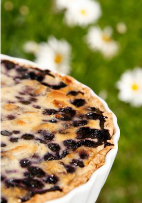 Sega põhja koostisained kiiresti omavahel kokku ja pane pooleks tunniks külmikusse. Sega täidise valmistamiseks kõik komponendid omavahel kokku. Suru tainas 24 cm-se läbimõõduga koogivormi põhja ja äärtele ja küpseta 200-kraadises ahjus kuniks põhi on kuiv (ca 1o-12 minutit). Seejärel pane mustikad eelküpsetatud põhjale ja vala ettevaatlikult peale täidis. Küpseta 185-kraadises kuumuses u. 45...